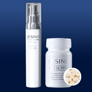 薬用エルシーノ集中美白美容液、専用美容サプリプレゼント。